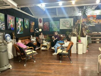 “Hi, I’m Georgette. Welcome to my art studio and gallery here in Birkdale.