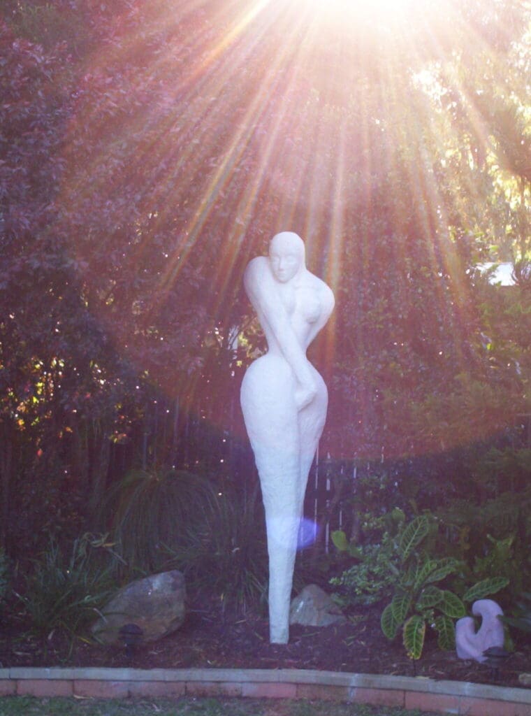 This is a sculpture which I sculpted approximately 25years ago Titled ” Inner Peace” When I started teaching in Birkdale and noticed that during the festive season everybody needs to find that inner peace inside themselves. Its not out there its within you. She stands 3 meters tall and she is visible as soon as you enter my studio and past the sign at the gate which reads ” You are now entering a stress free Zone ” www.georgettesart.com