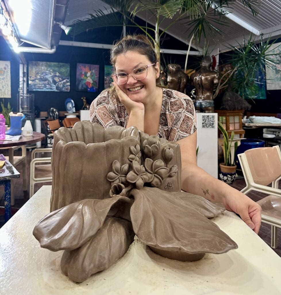 “Hi, I’m Georgette. Welcome to my art studio and gallery here in Birkdale. I teach adults how to create their very own original clay sculptures — no experience needed.