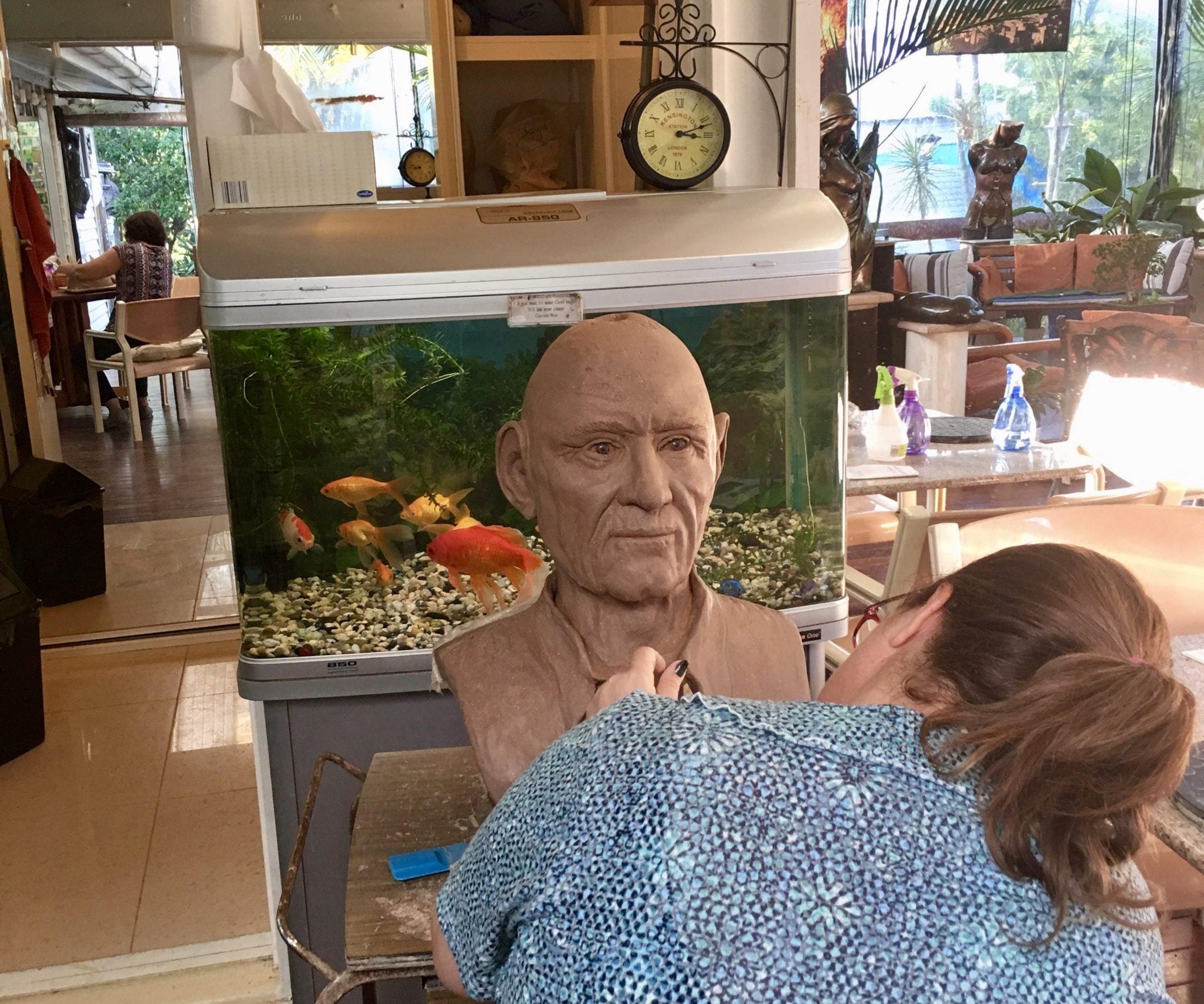A one off original clay sculpture by Tracy is being created @ Birkdale at Georgettesart Gallery and studio, looking forward to adding on the hair and hat.